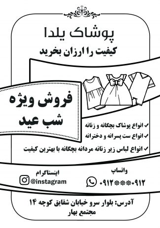 تراکت فروشگاه پوشاک بچه گانه و زنانه تک رنگ